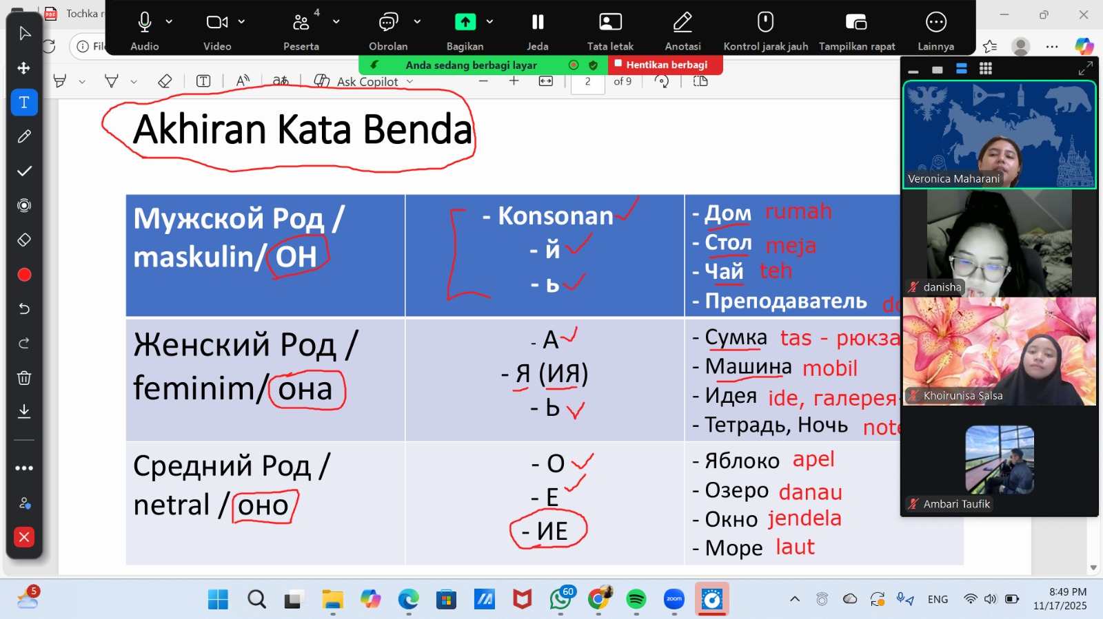 “Selama mengikuti kelas, menurut aku cukup seru dan juga penjelasan dari Kak Zien mudah dipahami. Jujur di kelas bahasa Rusia di kuliah aku kurang paham, namun selama belajar di BBRI,tutornya membuat aku jadi lebih paham dan juga pembelajaran santai jadi seru. “